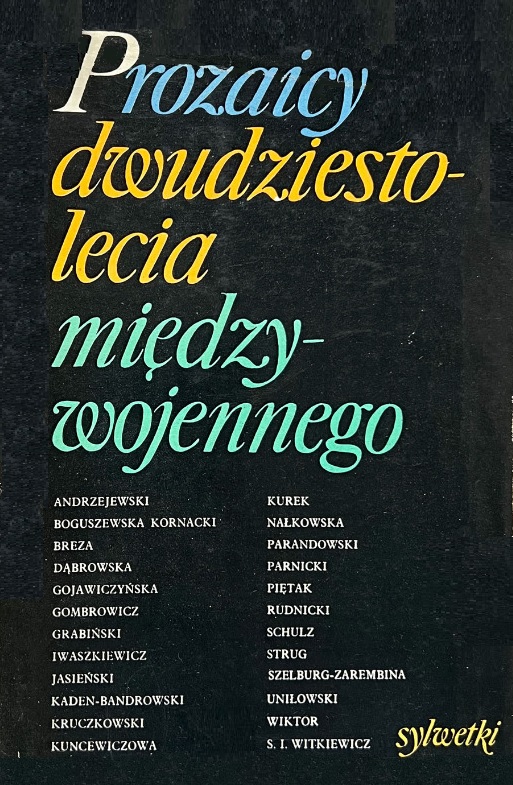 Zbiór 24 szkiców pióra polskich krytyków literackich ukazujący sylwetki twórcze pisarzy, których nazwiska należały do najistotniejszych zjawisk w prozie międzywojennej zarówno w zakresie ideowego i politycznego aspektu, jak i w dziedzinie propozycji warsztatowych. Każdy szkic poprzedza nota biograficzna, kończy bibliografia twórczości danego pisarza i ważniejszych o nim opracowań.