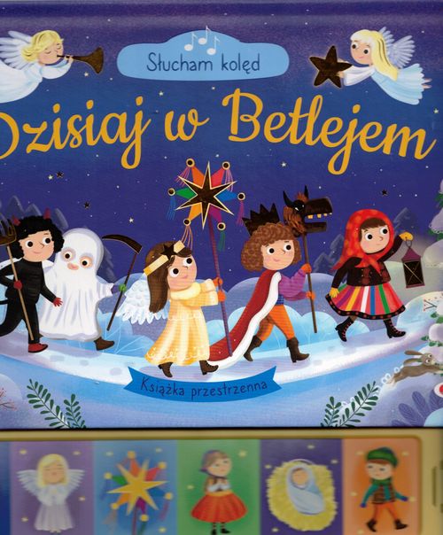 "Słucham kolęd. Dzisiaj w Betlejem” to wyjątkowa książka kartonowa z panelem dźwiękowym i rozkładanymi, przestrzennymi scenkami bożonarodzeniowymi. To idealny pomysł na prezent świąteczny dla dzieci, który łączy w sobie naukę, zabawę i piękne tradycje. W publikacji znajdują się teksty najpiękniejszych polskich kolęd, wzbogacone uroczymi ilustracjami. Po naciśnięciu przycisków maluch usłyszy kolędy w wykonaniu dzieci, co sprawia, że wspólne śpiewanie staje się jeszcze bardziej magiczne. Przestrzenne, rozkładane strony przenoszą najmłodszych w klimat świąt Bożego Narodzenia i ukazują wyjątkowe scenki z Betlejem. Książka rozwija wyobraźnię, wzbogaca słownictwo i wprowadza dzieci w piękne polskie tradycje świąteczne. Seria „Słucham kolęd” zawiera najbardziej znane kolędy, a dodatkowym atutem są rozkładane ilustracje i nagrania śpiewane przez dzieci. To publikacja, która bawi, uczy i wprowadza w wyjątkowy nastrój Świąt. Dlaczego warto wybrać tę książkę?: prezentuje 6 tradycyjnych kolęd bożonarodzeniowych, zawiera panel dźwiękowy z nagraniami śpiewanymi przez dzieci, posiada rozkładane scenki świąteczne, wspiera rozwój dziecka poprzez muzykę, obraz i tekst. [wydawca]