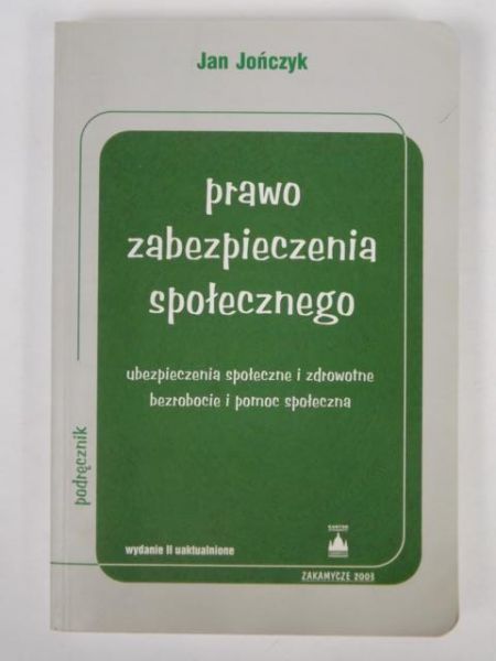 Prawo zabezpieczenia społecznego : ubezpieczenia społeczne i zdrowotne, bezrobocie i pomoc społeczna / Jan Jończyk. - Wyd. 2 uaktual., stan prawny na 1 stycznia 2003 r. - Kraków : Kantor Wydawniczy ZAKAMYCZE, 2003. - 468, [1] strona ; 24 cm.