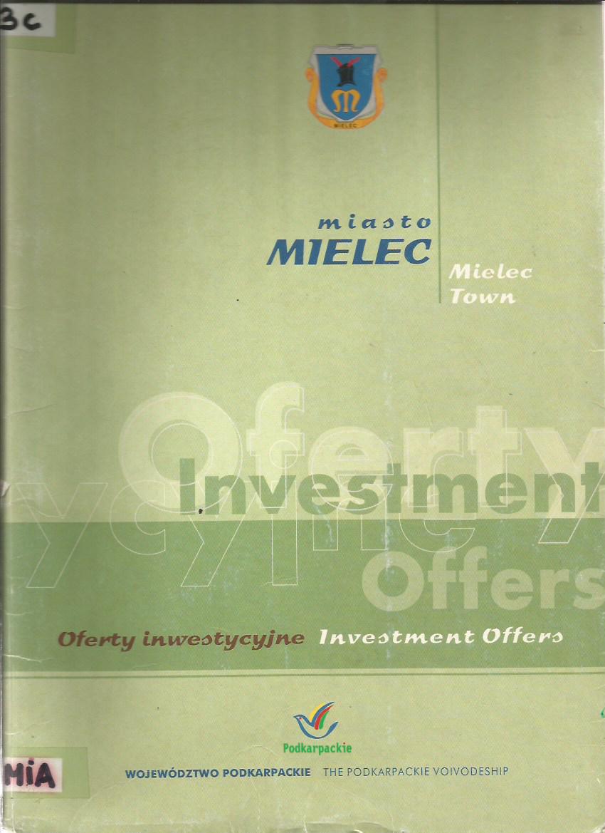 Miasto Mielec : podstawowe informacje dla inwestora. - [Brak miejsca] : [Brak wydawnictwa], [2003]. - Teka (15 kart,[5] stron tablic) ; 30 cm.