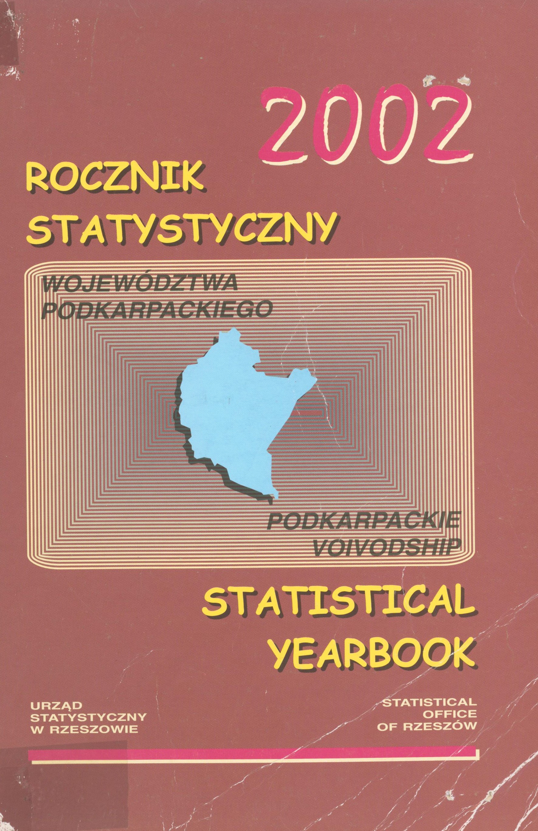 I. Tablice przeglądowe : 2. Podkarpackie na tle innych województw w 2001 r. ; 1. Ważniejsze dane o województwie podkarpackim (1995, 1998-2001) w II. Działy : 1. Geografia ; 2. Stan i ochrona środowiska ; 3. Organizacja województwa; 4. Wymiar sprawiedliwości, Bezpieczeństwo publiczne ; 5. Ludność; 6. Rynek pracy ; 7. Wynagrodzenia. Świadczenia z ubezpieczeń społecznych ; 8. Budżety gospodarstw domowych ; 9. Infrastruktura komunalna. Mieszkania ; 10. Edukacja i wychowanie ; 11. Ochrona zdrowia i opieka społeczna ; 12. Kultura. Turystyka. Sport ; 13. Technika ; 14. Ceny ; 15. Rolnictwo i łowiectwo i leśnictwo ; 16. Przemysł i budownictwo; 17. Transport i łączność ; 18. Handel i gastronomia; 19. Finanse przedsiębiorstw; 20. Budżety jednostek samorządu terytorialnego ; 21. Inwestycje. Środki trwałe; 22. Rachunki regionalne ; 23. Podmioty gospodarki narodowej. Prywatyzacja.