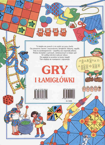 Ta książka nie pozwoli ci się nudzić ani przez chwilę. Gry planszowe, losowe i zręcznościowe, łamigłówki, labirynty, zagadki, testy na spostrzegawczość - wypełnią czas wspaniałą zabawą. Możesz skorzystać z gotowych, zamieszczonych w książce gier lub według instrukcji wykonać własne. Nie zaglądaj za wcześnie na koniec książki! Tam znajdują się rozwiązania i odpowiedzi.