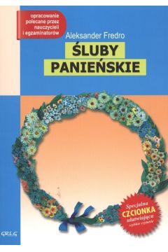 Wydanie Ślubów panieńskich kompletne bez skrótów i cięć w treści. W tym wydaniu znajdziesz odpowiedzi na pytania z podręcznika - „pewniak na teście”, czyli wskazanie zagadnień, które zwykle pojawiają się w pytaniach z danej lektury we wszelkich testach sprawdzających wiedzę, a także w podręcznikach i na klasówkach. Zawiera bardzo szczegółowe streszczenie oraz drugie skrócone, ułatwiające szybkie przygotowanie się przed lekcją. Opracowanie zawiera plan wydarzeń, wnikliwie wyjaśnioną problematykę oraz szerokie charakterystyki bohaterów. Aniela i Klara to dwie panny na wydaniu. Obie jednak traktują „ród męski” z wielkim dystansem, nie bardzo wierzą w szczęście przy boku mężczyzny. Stąd pomysł ślubów wiecznego panieństwa. Ich opiekunowie, Radost i pani Dobrójska, patrzą na to z przymrużeniem oka - wiedzą, że prawdziwa miłość całkowicie zmienia ogląd świata. Tylko co zrobić, żeby młodzi się z w sobie zakochali? Tu nieoceniony okazuje się młody i przystojny Gustaw...