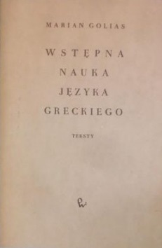 Wstępna nauka języka greckiego : teksty / Marian Golias. - [Wydanie 12]. - Warszawa : Państwowe Wydawnictwo Naukowe, [1989]. - 46, [1] strona : ilustracje ; 24 cm.