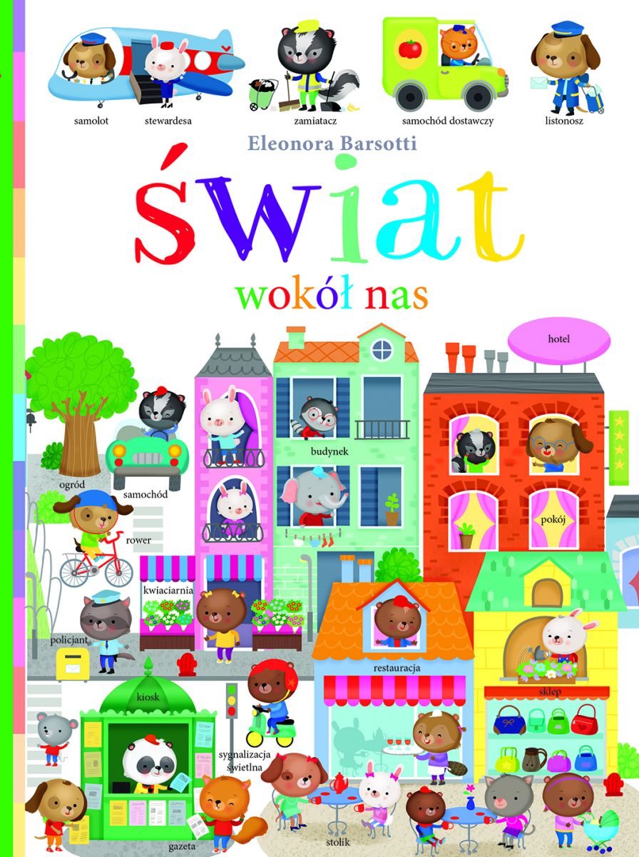 Pełne barwnych rysunków sceny pomogą dzieciom poznać otaczający je świat: szkołę, szpital, miasto, port, gospodarstwo wiejskie, sklepy, środki transportu.